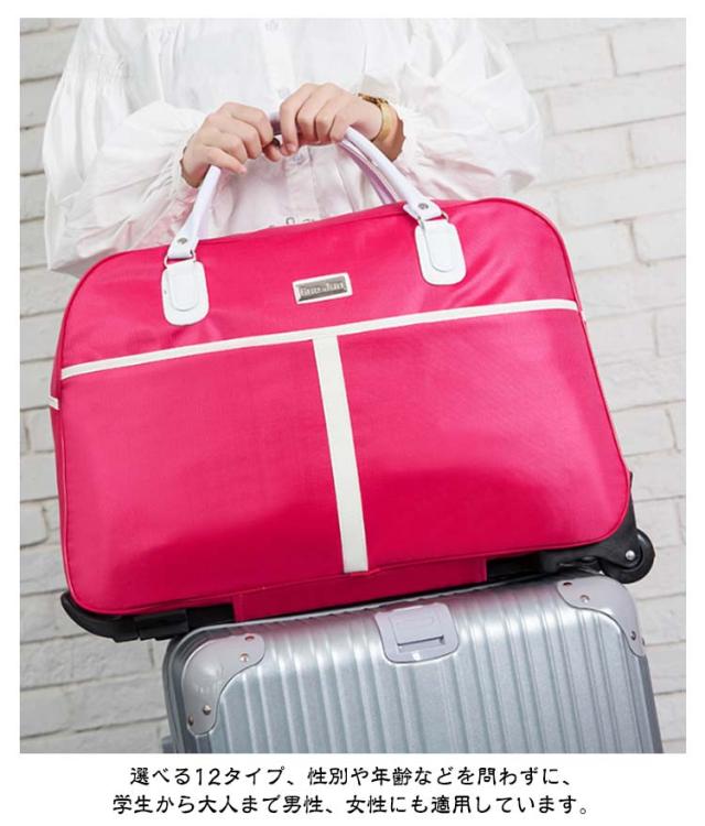 | 使いやすい大容量キャリーバッグ 重たい物をたっぷり入れても、キャリーにすれば持ち運びもラクラク♪ ゴム構造ローラーディザインで2輪キャスターは消音の設計があります。凸凹な路面でもスムーズで安定した移動を可能にします。 フロントポケットは鍵、携帯電話、ノート、パスポートなどの小物を持ちやすい。 開口部が大きく開くダブルファスナー仕様。中がすべて見渡せて大きい荷物もストレスフリーで出し入れ出来ます。 このボストンバッグは汚れにくいすぐれたオックスフォードル生地を採用しますので防水効果が良い、雨の日でも安心できます。また、丈夫で耐久性がある、長い時間でも使います、実用性が高いです。 選べる12タイプ、性別や年齢などを問わずに、学生から大人まで男性、女性にも適用しています。 旅行、出張、通学、合宿、アウトドア、遠足、ショッピング、お釣り、帰省、お出かけ、スポーツ、防災用など様々なシーンで活躍できます。母の日、父の日、誕生日、卒業日など祝日で、プレゼントとしてもオススメです。 | |