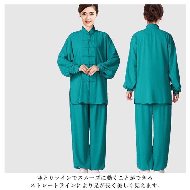 | 中華ボタンをたっぷり編み込まれたスタイルにゴージャス感を演出できます。 上下セット、長袖、チャイナボタン、裾やウエストはゴム入りです。 吸湿速乾に優れ、いつでも快適、肌触りがソフトで軽量、通気性があります 太極拳の自然な動きを表現するために上着裾にスリットを持っています。 ゆとりラインでスムーズに動くことができる ストレートラインにより足が長く美しく見えます。 快適な着用感、ソフトでエレガント、太極拳の練習に最適です。 | |