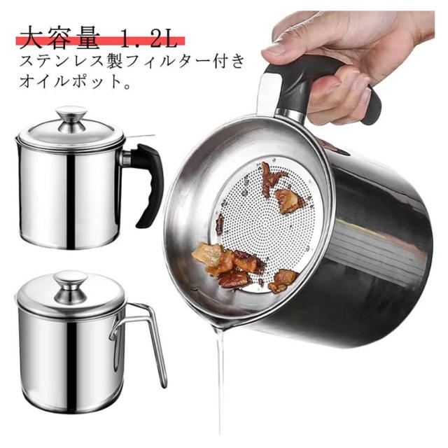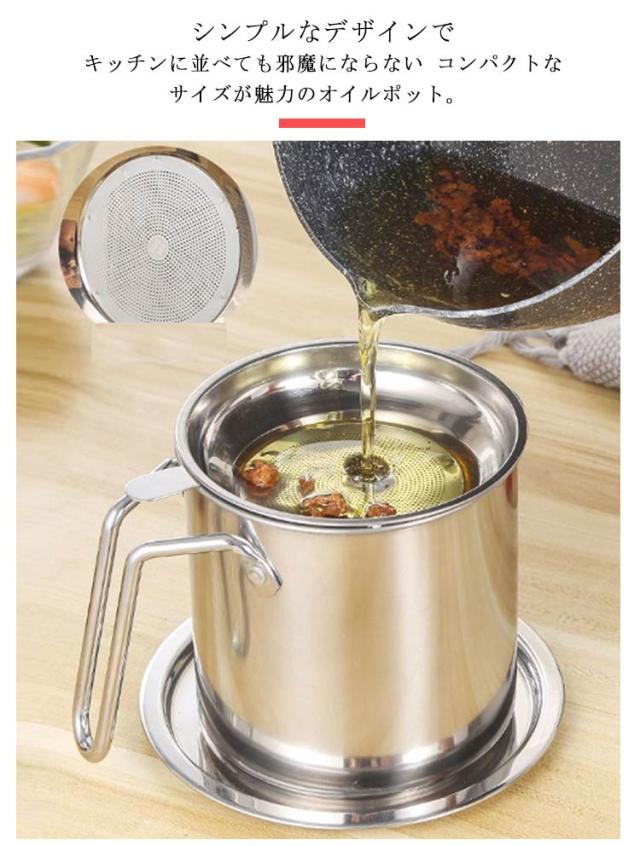 ステンレス オイルポット 1.2L 油こし器 油入れ 油こし オイル入れ 油ポット フィルター こし網 オイル 油 こし器 フィルト オイルポット スリム 大容量 コンパクト 小さめ 揚げ物 調理器具 油濾し 油 濾過 保存 節約 【送料無料】