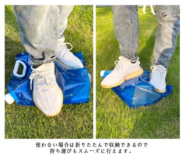 | 軽量で大容量! 使わない場合は折りたたんで収納できるので持ち運びもスムーズに行えます。 持ち手が付いているので移動もしやすいです。 バーベキューやキャンプなどのアウトドア・レジャーシーンなど 水タンクがあれば、手を洗いたい時など様々な場面で水が使えるのでとても便利です。 災害時の水の確保など非常用給水袋にも使えるのでおすすめです。 | |