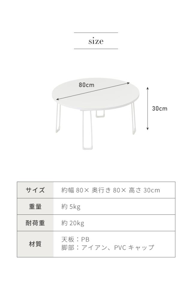 【roomnhome×リコメン堂】センターテーブル 丸型 白 80cm 折りたたみ おしゃれ 韓国インテリア 耐荷重 約20kg ローテーブル【限定商品】かわいい シンプル インテリア モダン 北欧 一人暮らし(代引不可)【送料無料】