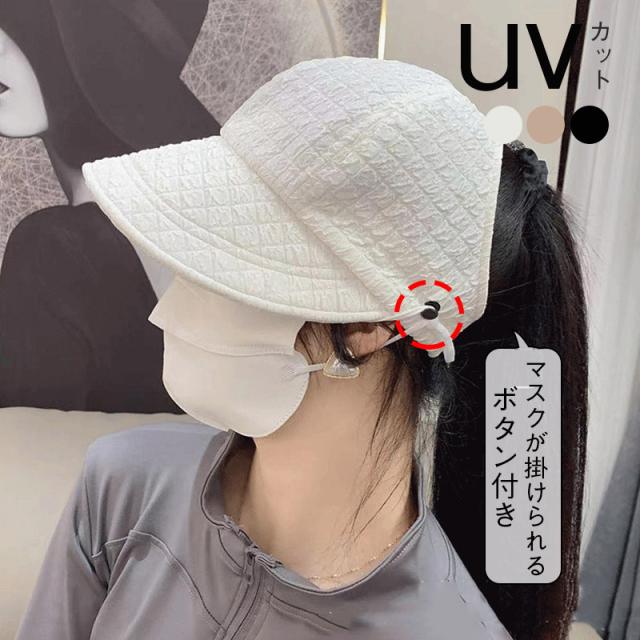 UVカット帽子 サイズ調整可 キャップ チェク柄 マスク掛け付き 小顔効果 折りたたみ 日よけ 運動会 自転車帽子 旅行 遮光100% UV対策