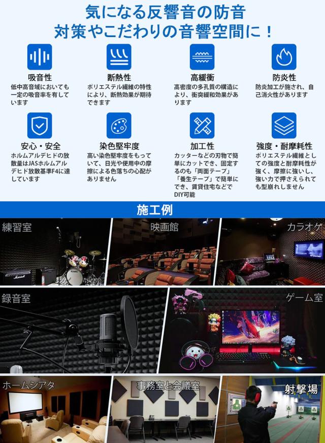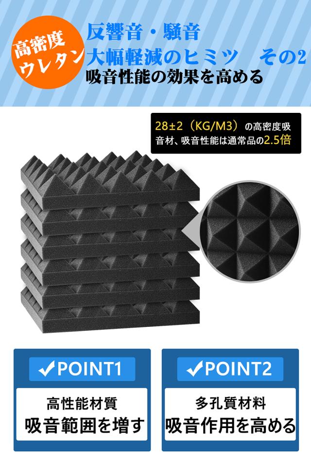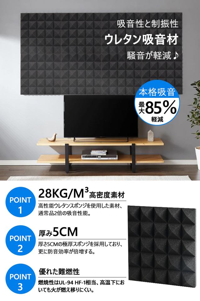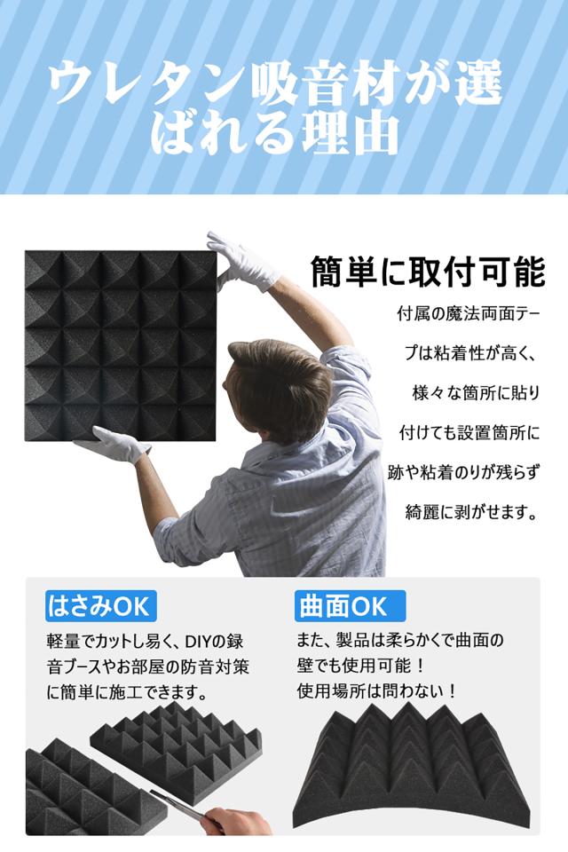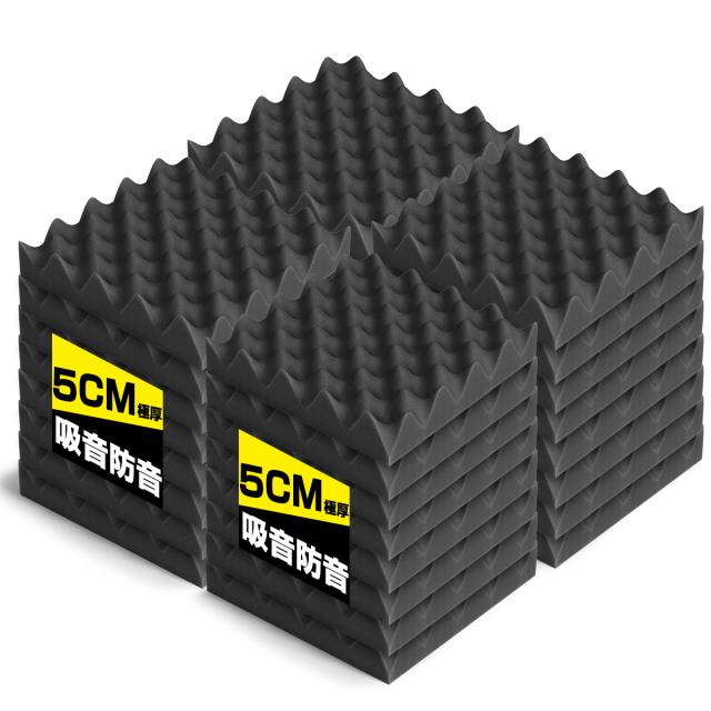 【送料無料】吸音材 防音材【24枚】防音 吸音 壁 賃貸 防音パネル 防音シート ウレタン吸音材 スポンジ 防音材 高密度 断熱 難燃 騒音防止 緩衝材 吸音マット 室内装飾 25CM×25CM×5CM 【両面テープ付き】 贈り物