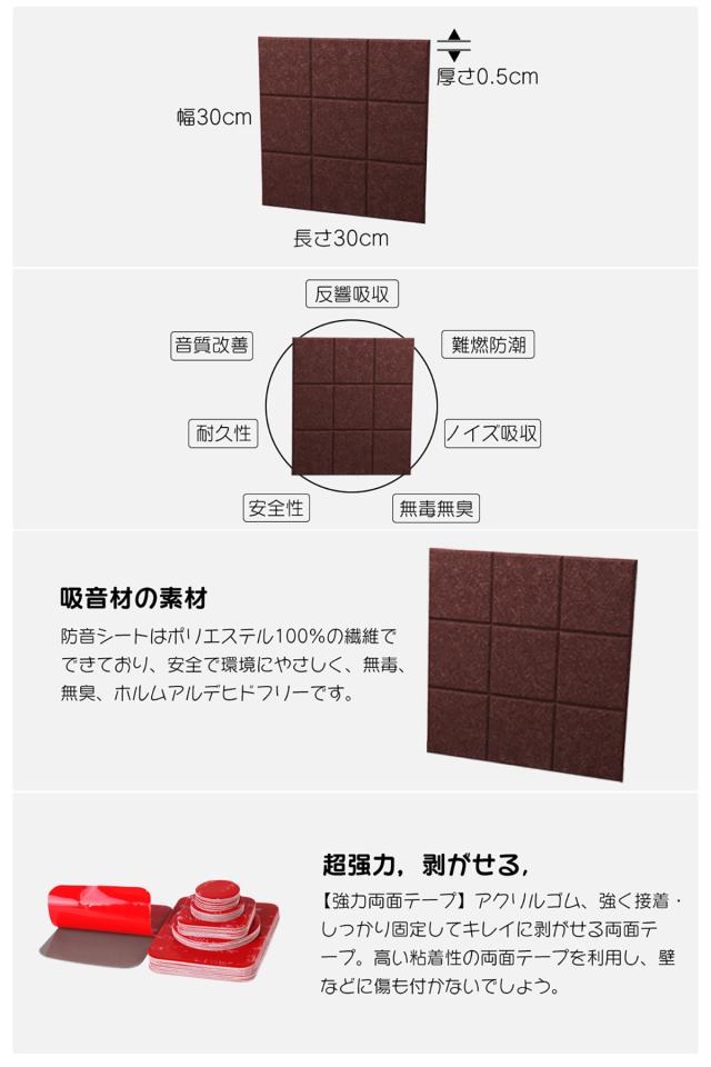 【送料無料】【6枚】吸音ボード 吸音材 【高品質素材採用】 硬質吸音フェルトボード 難燃 吸音パネル 室内装飾 楽器 ピアノ室 防音対策 カラー選択可 両面テープ付き