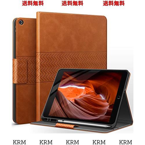 auaua iPad 第8世代ケース/iPad 第7世代ケース 鉛筆ホルダー付き ビーガンレザー 自動スリープ/ウェイク機能付き iPad 10.2インチ用 (ブラウン)