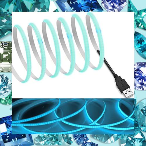 【RYE】 COB テープライトLEDストリップライトフレキシブル 高密度 幅5mm 隠れたLEDテープライト2m 320LEDs/m アイスブルー DC5V 180°発