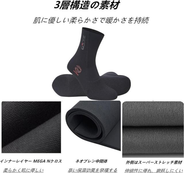 【水中のぬくもり】 足首のブーツやダイビングフィンと組み合わせることで、極端に冷たい水の中で暖かさを増すことができます。海に飛び込むとき、靴下はサンゴやサンゴ礁からあなたの足を守ることができます。