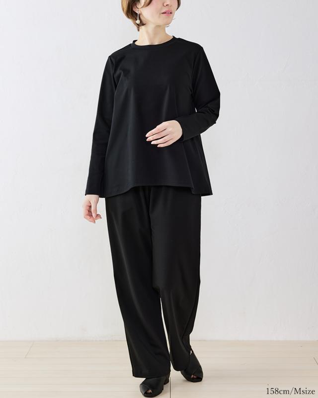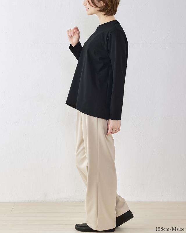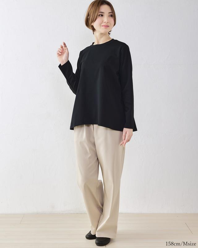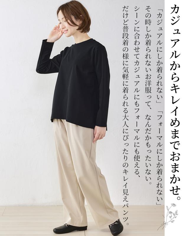 強撚コットン ワイドパンツ 綿100% キレイ見え 日本製 レディース きれいめ 上品 パンツ ロングパンツ M/L 大きいサイズ ウエストゴム フォーマル セミフォーマル 大人カジュアル カジュアル 4130930