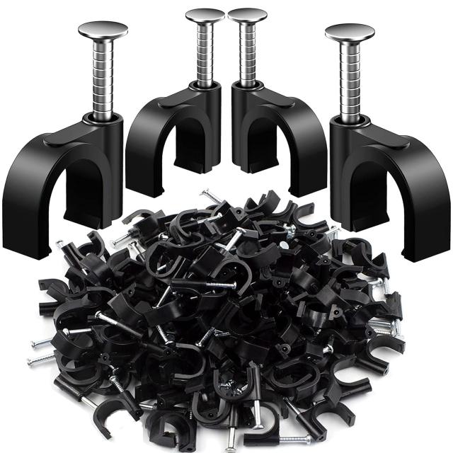 コード止め プラスチック 壁 アンテナ線5C用 (100個, 7mm)Suptopwxm ケーブルステップル 釘止めタイプ 配線固定用