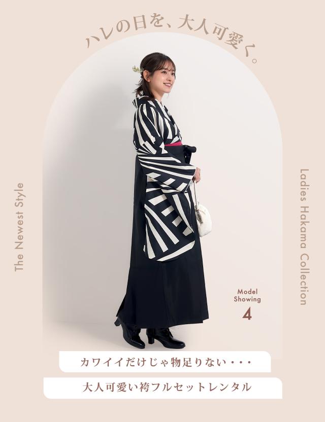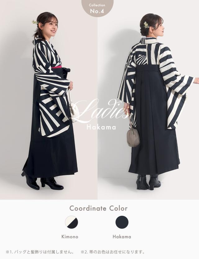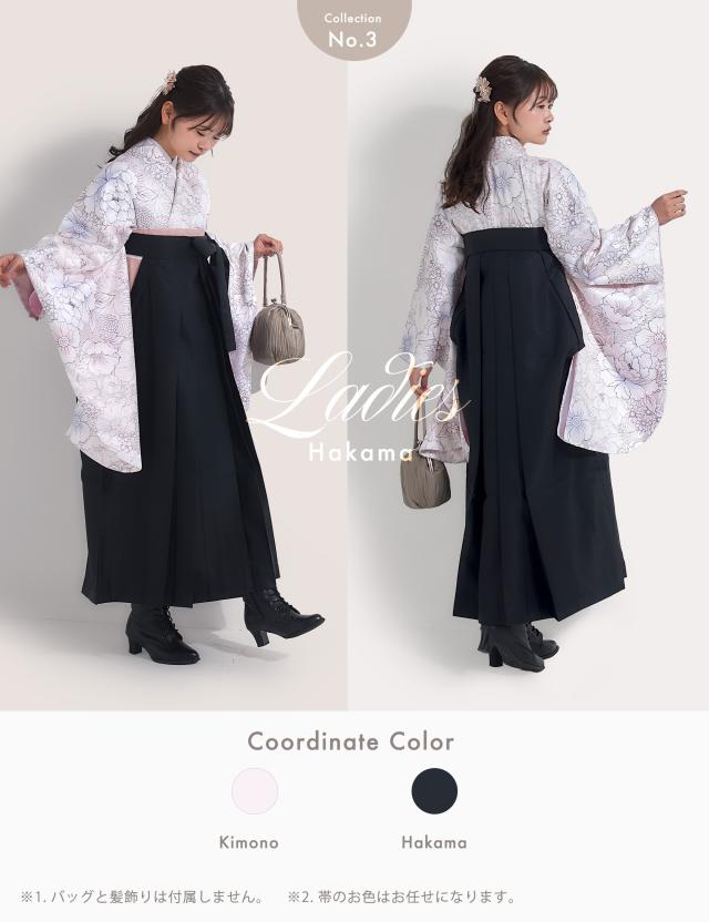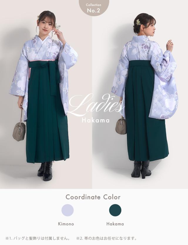 二尺袖 着物 袴 コーディネート済 レンタル フルセット 選べる4柄 無地袴 トレンドデザイン コレクション 和服 袴 モダン レトロ【貸衣装 卒業式 大学生】【袴 S M L LLサイズ】刺繍 個性派 フェミニン くすみカラー 青 ブラック 緑 グリーン 椿 オレンジ 赤