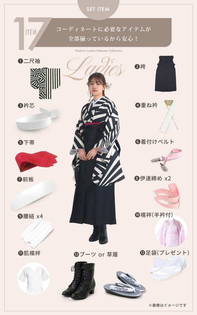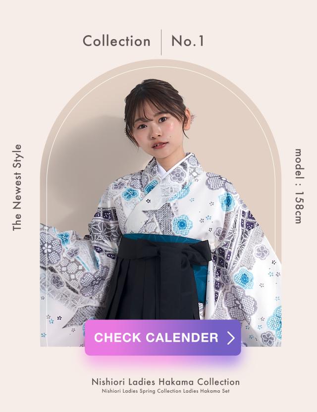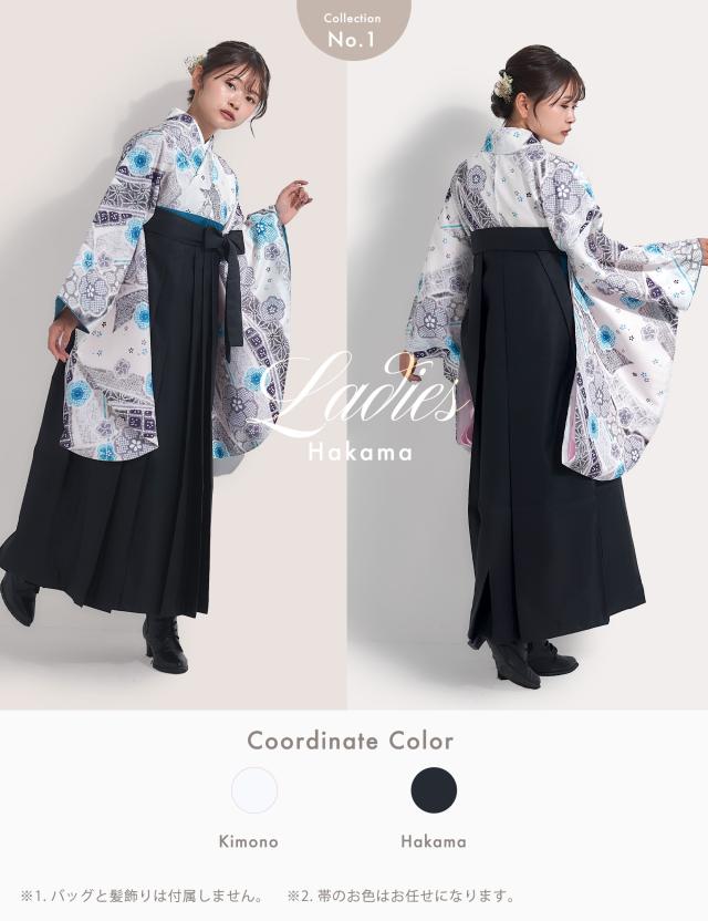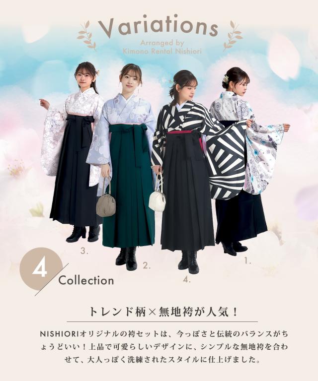 トレンド柄×無地袴の貸衣装NISHIORIオリジナルセットです。