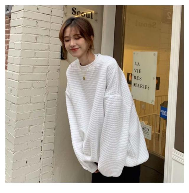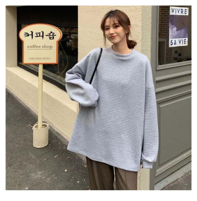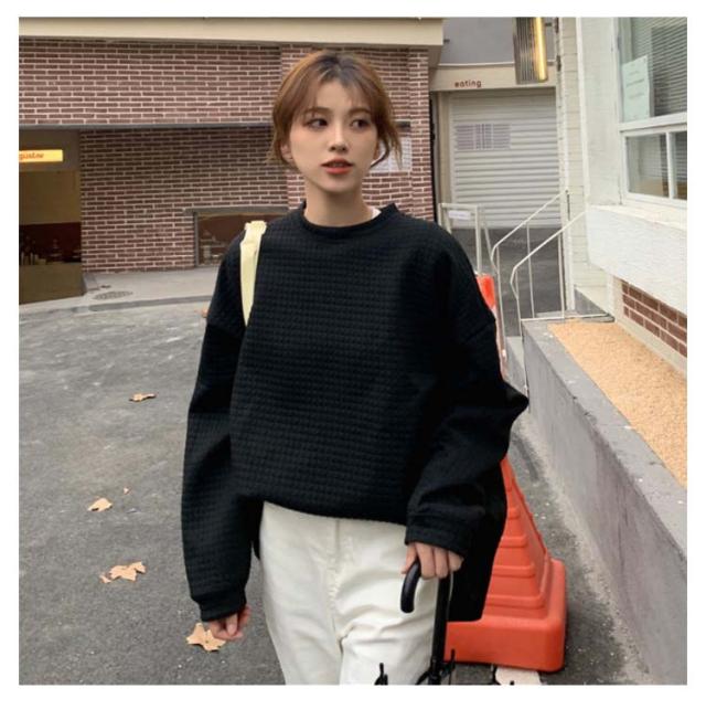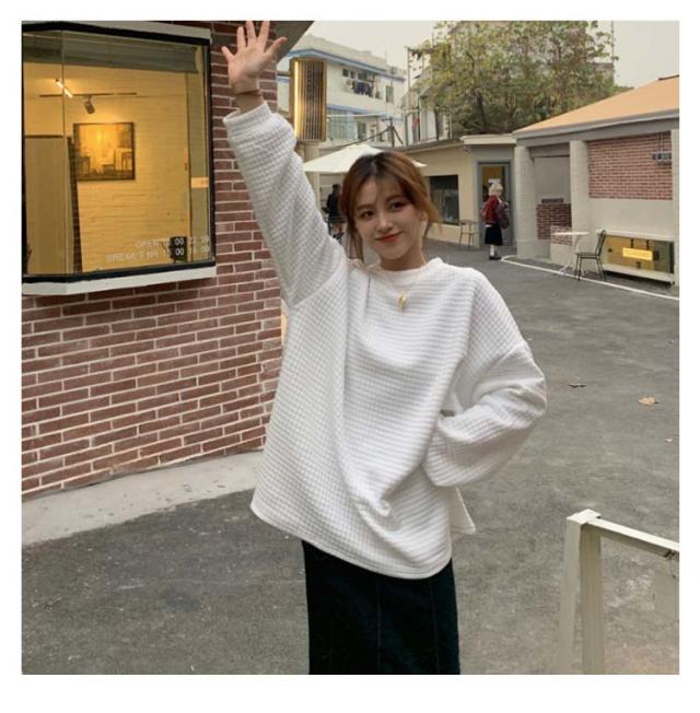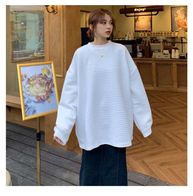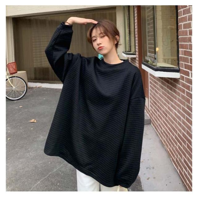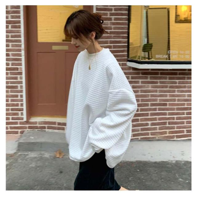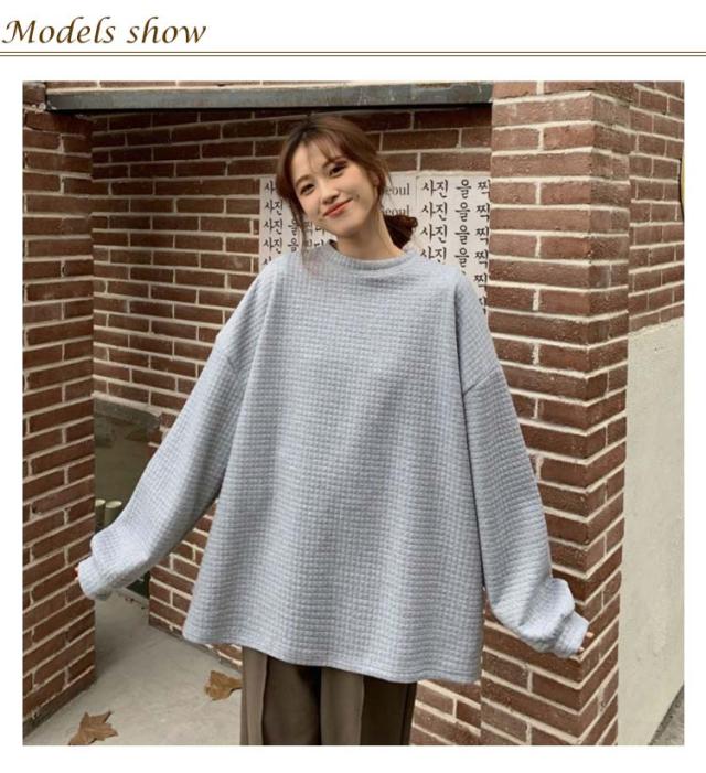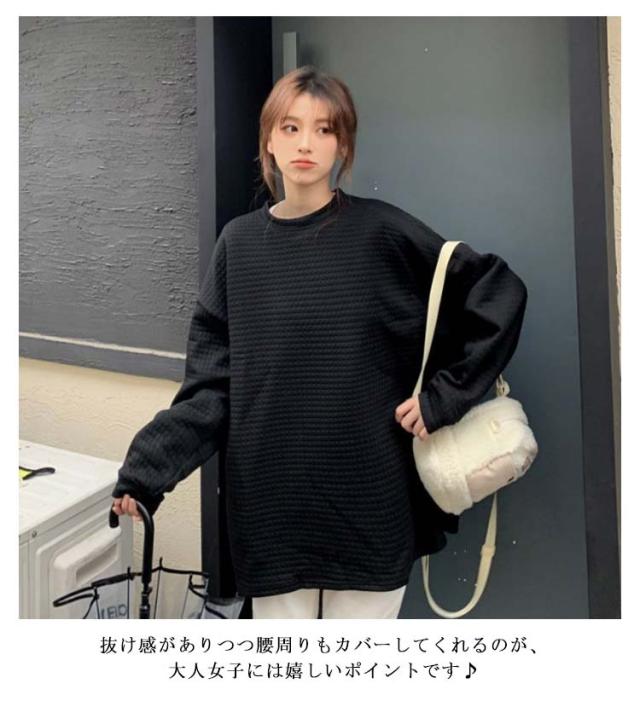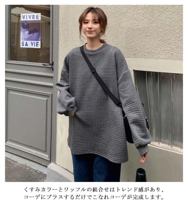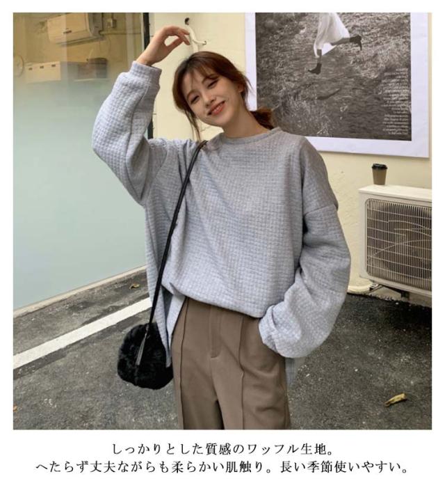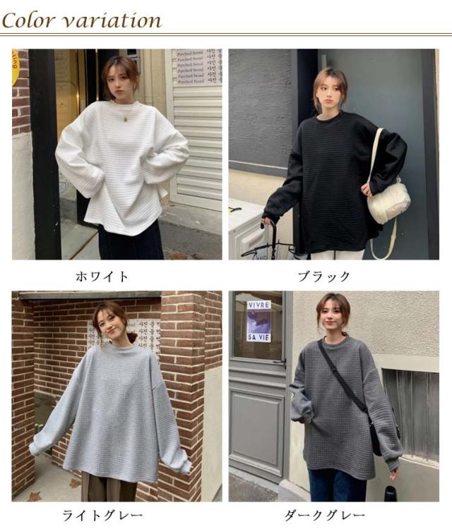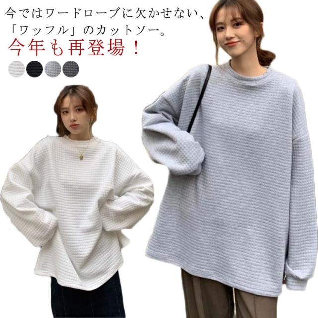 ロンT レディース トップス 無地 長袖 サーマルカットソー トップス ワッフル プルオーバー ロンT トレーナー カットソー Tシャツ ロングTシャツ 大きいサイズ 丸首 体型カバー ぽわん袖 コクーンシルエット 送料無料 ワッフル編み 黒 白 春 秋