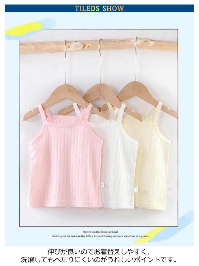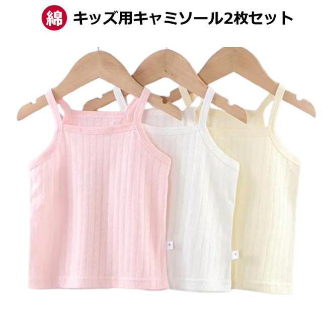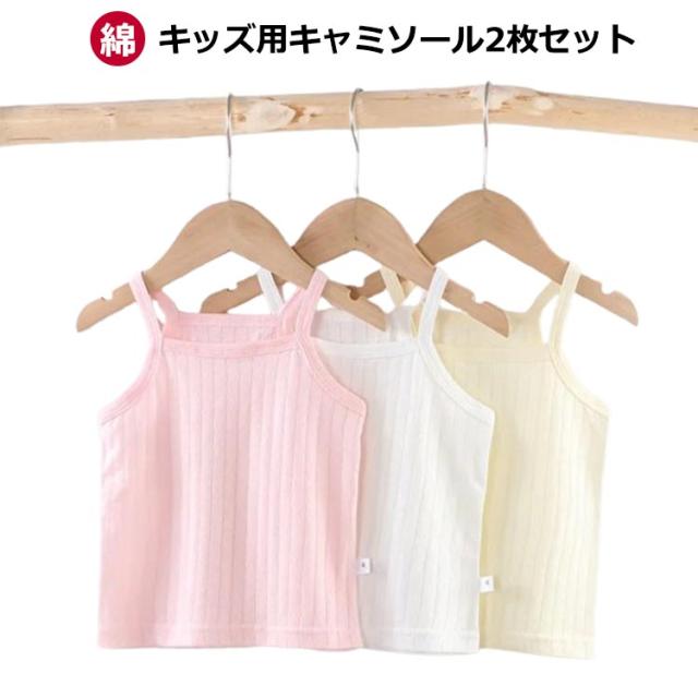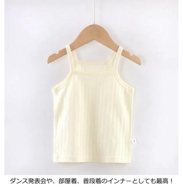 | キッズ用キャミソール2枚セット 伸びが良いのでお着替えしやすく、洗濯してもへたりにくいのがうれしいポイントです。 伸縮性もよく、締め付け感なし! 汗をよく吸って、べたつかない、一日中さらっと肌触り! シンプルな薄手のTシャツや、カーディガン、制服にも響かない柔らかな万能キャミ! ダンス発表会や、部屋着、普段着のインナーとしても最高! | |