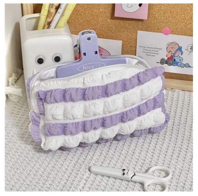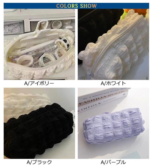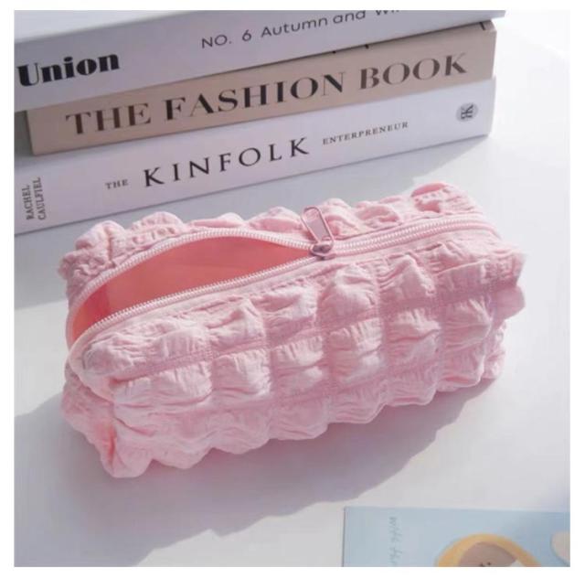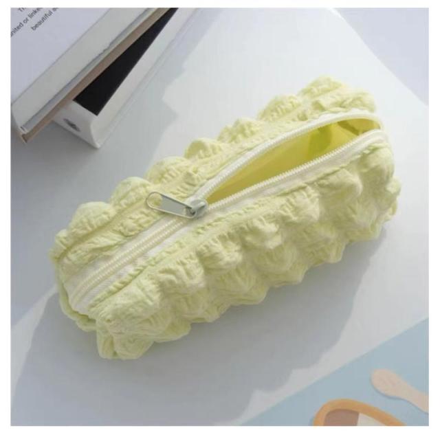 | トレンドのポップコーンのような生地感がおしゃれなペンケース ふわふわ立体の泡のようなバブルワッフルデザインがキュートでおしゃれ! 春夏にぴったりなパステルカラー展開。 ペンなどの文房具やメイクブラシなど収納できます。 | |