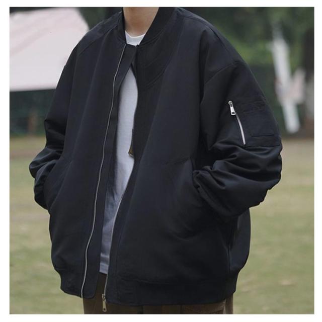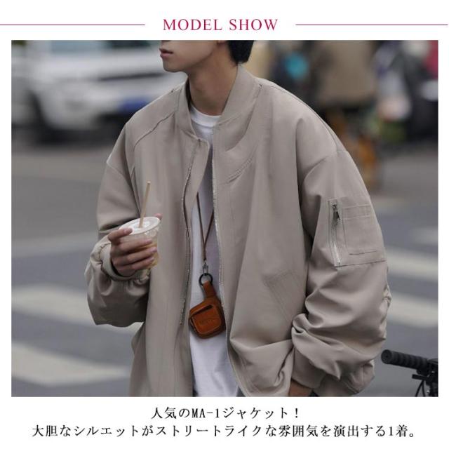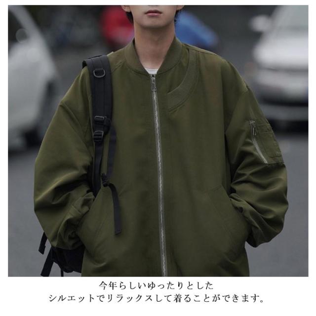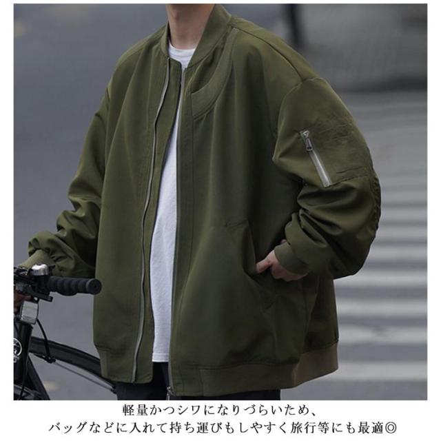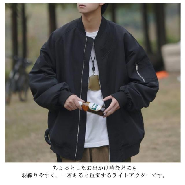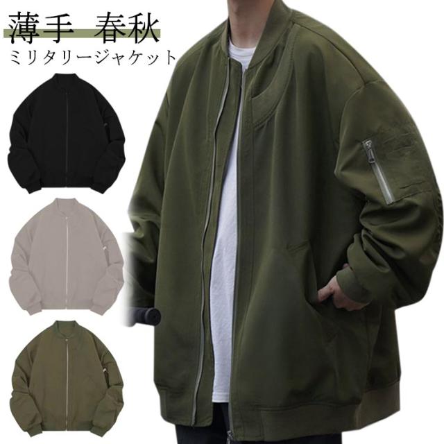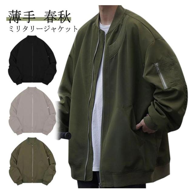 ジャケット ミリタリー ジャンパー メンズ フライトジャケット ブルゾン オーバーサイズ 春 アウター 薄手 ゆったり 裏地付き グレー 秋 ライトアウター カジュアル ストリート カーキ 大きいサイズ シンプル ブラック 黒 MA-1