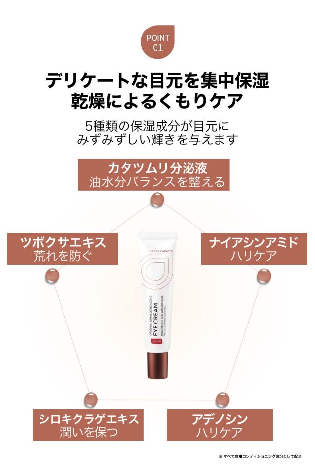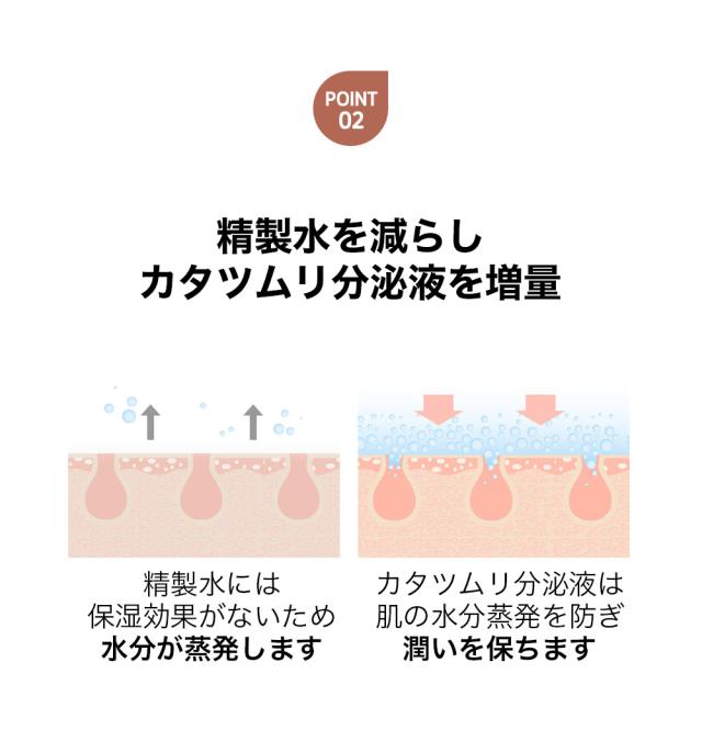 精製水の配合量を減らすことで、目元の潤いを維持するカタツムリ分泌液を増やしました。