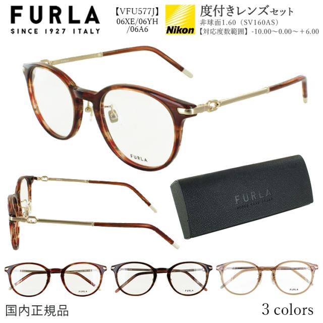 度付きメガネ ブランド フルラ レディース おしゃれ 近視 近眼 乱視 遠視 老眼鏡 度なし 伊達 VFU577J コンビフレーム ボストン 06XE ウェービーダークレッド 06YH ウェービーブラウン 06A6 クリアブラウン 度入り 度あり 眼鏡フレーム 薄型 非球面レンズ セット 女性用