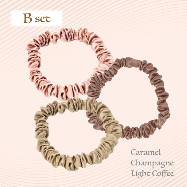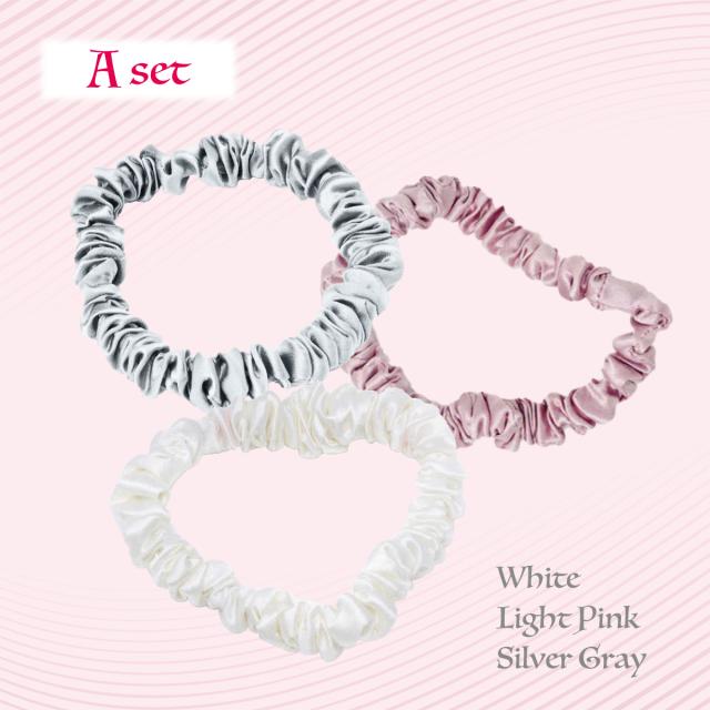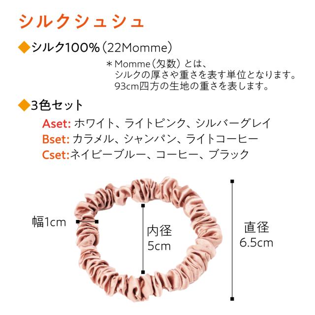 シルク シュシュ ヘアゴム セット 3本セット シルク100% 22匁 大人っぽい 小さめ ヘアゴム シンプル 髪にやさしい 跡が付きにくい ヘアケア 美髪 乾燥 静電気対策 腕 手首 ブラック プレゼント shushu