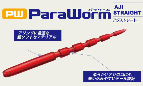 アジングに最適な超ソフトマテリアルのストレート。柔らかいアジの口にも吸いこみやすいテール設計