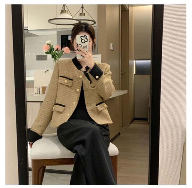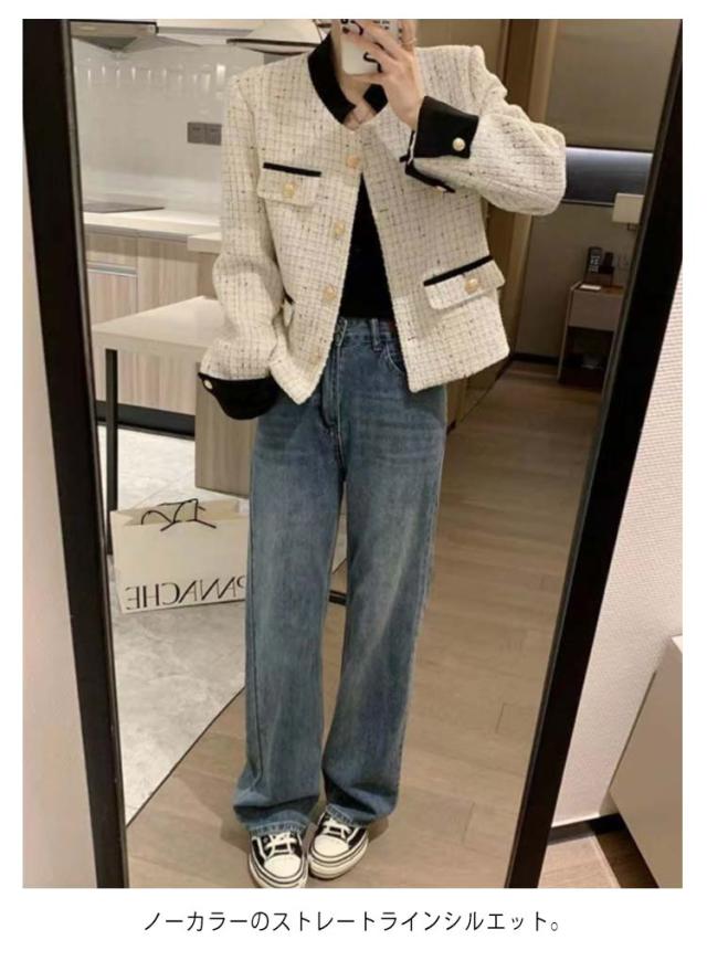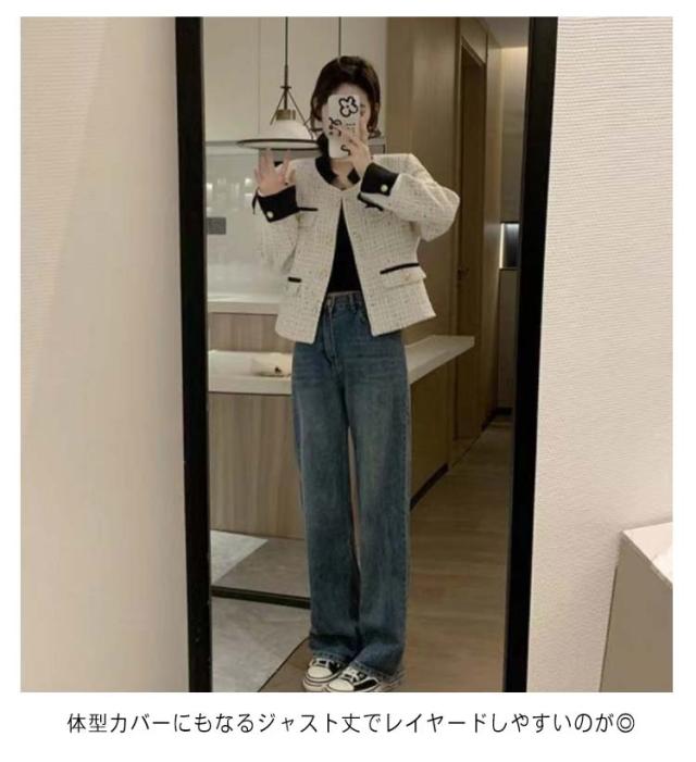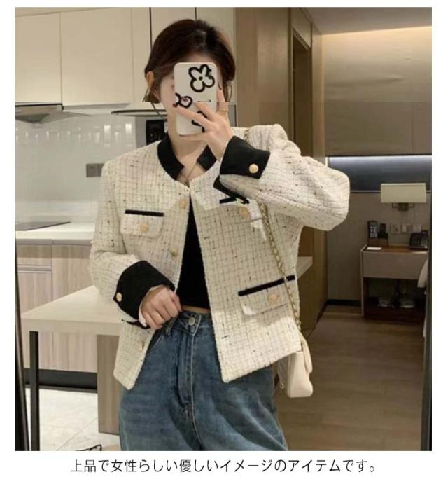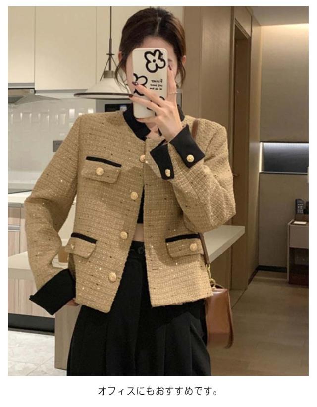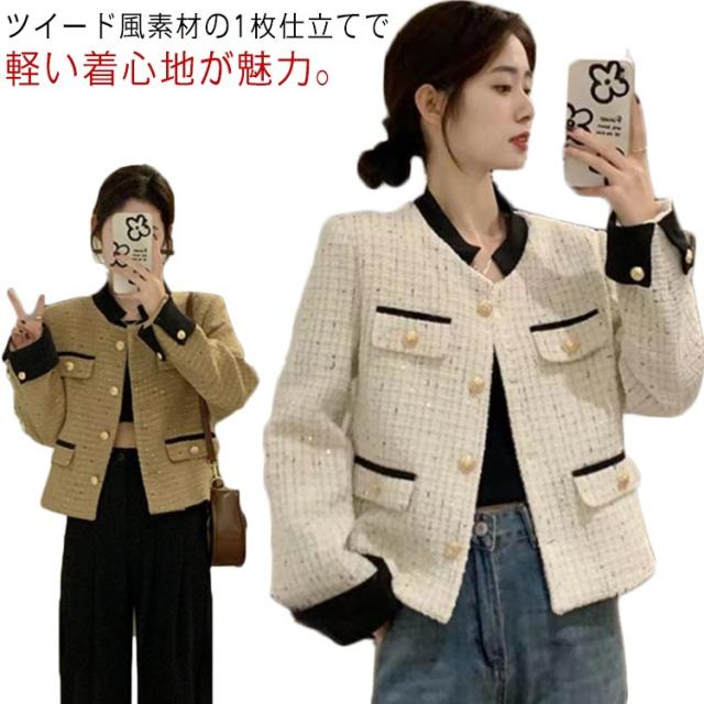 ツイード 春 ツイードジャケット ノーカラージャケット ジャケット フェミニン 可愛い 通勤 ツイードブレザー 体型カバー 長袖 フォーマル 大きいサイズ アウター お洒落 ライトアウター オフィス ジャケット コート シンプル 無地 秋 冬