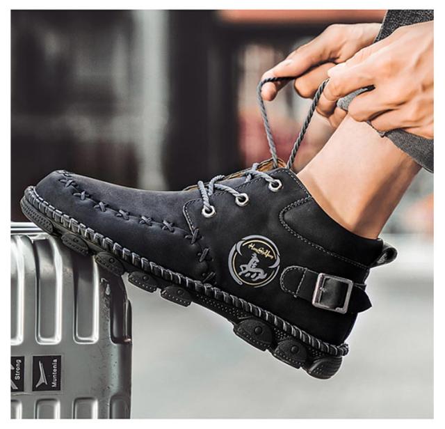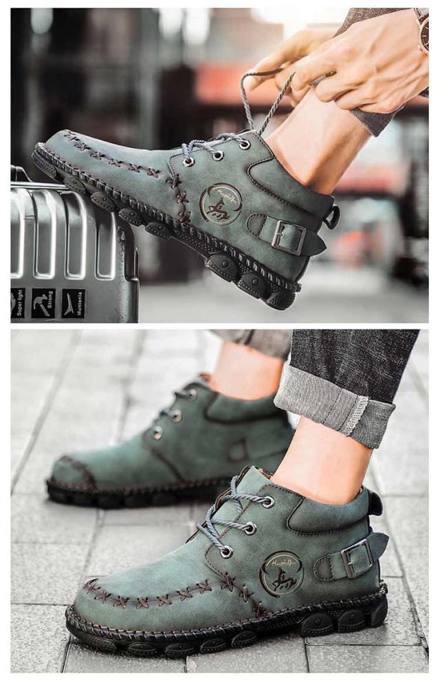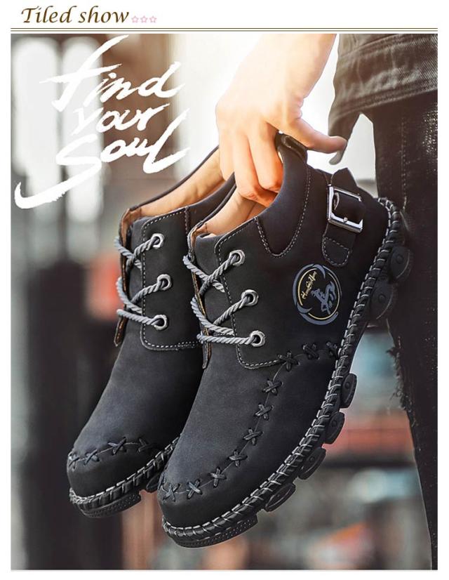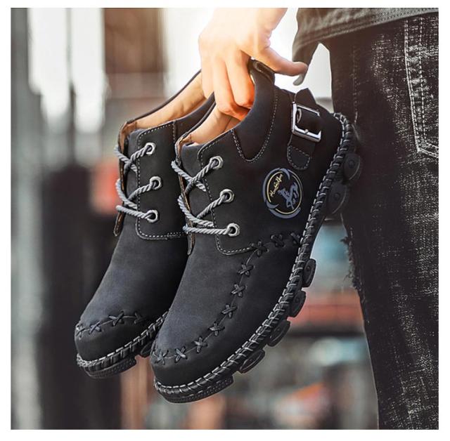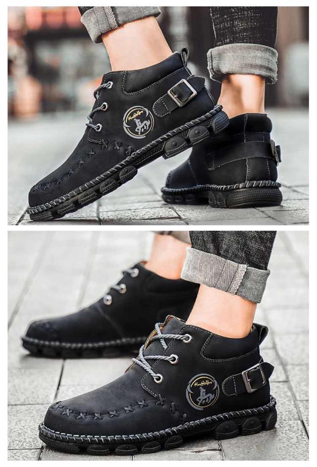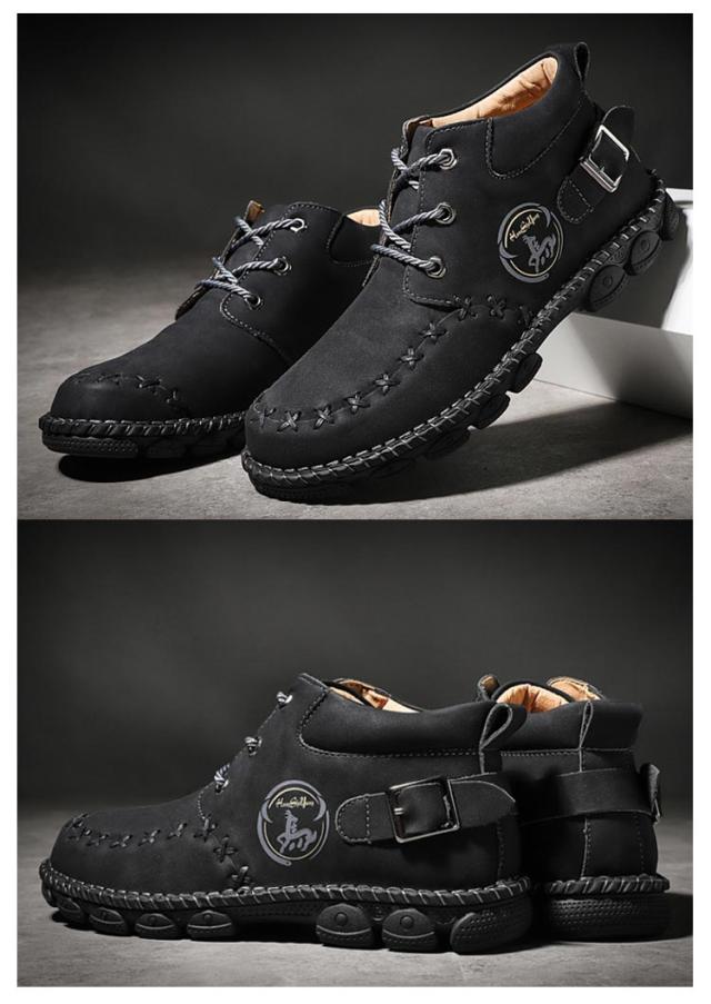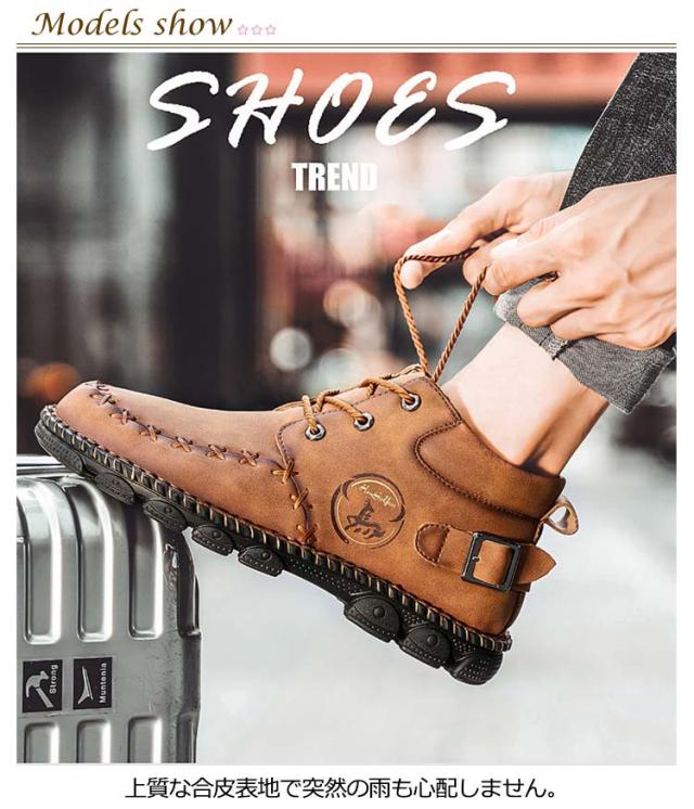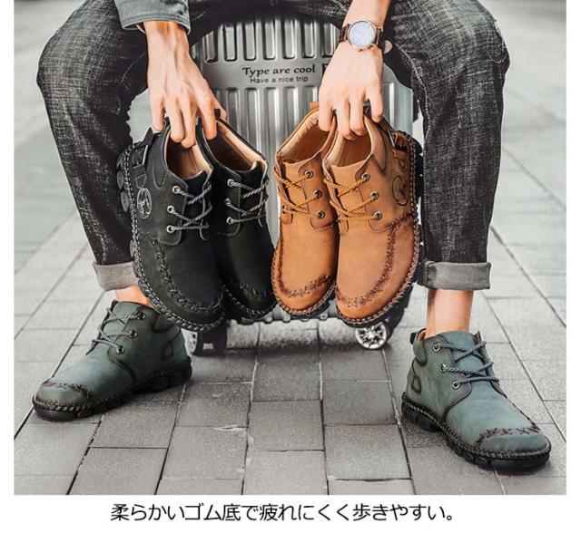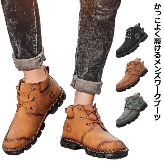 | かっこよく履けるメンズワークブーツ。 上質な合皮表地で突然の雨も心配しません。 柔らかいゴム底で疲れにくく歩きやすい。 アウトドアシーンからデイリーユースまで、幅広く活躍してくれるシューズです。 | |