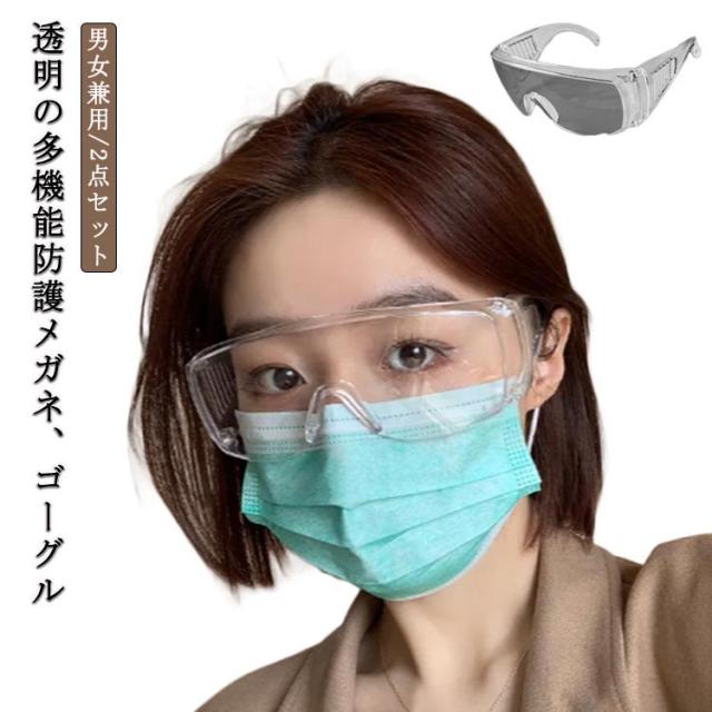 保護メガネ メガネ上 クリア 花粉症対策 保護メガネ ゴーグル 視界良好 保護めがね 透明 2点セット 通気 防風 眼鏡着用可 飛沫防止 防塵 防護 ウイルス 細菌 飛沫カット 花粉症対策めがね 送料無料 軽量