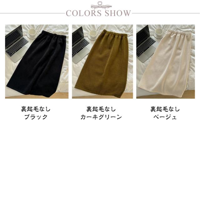 | 裏起毛なしと裏起毛の2タイプあり シンプルさと上品な抜け感を兼ね備えたコーデュロイタイトスカート。 | |