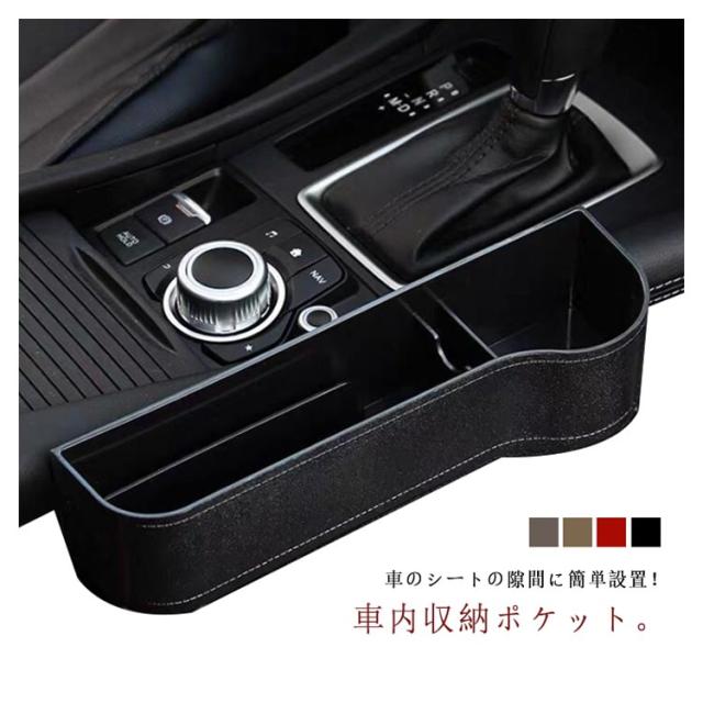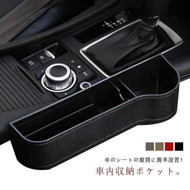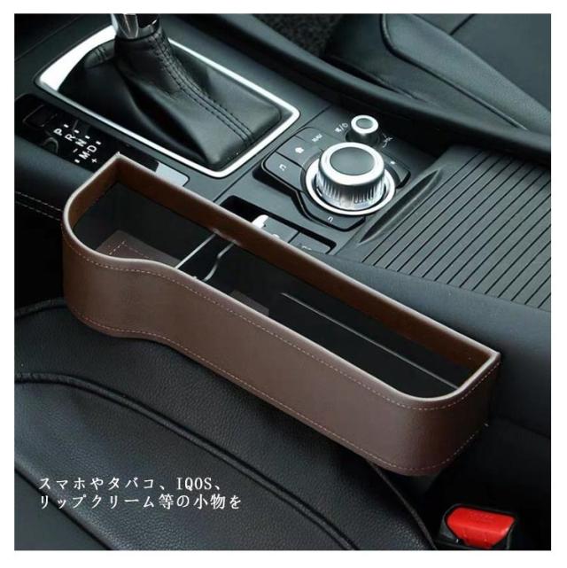 シートポケット コンソールボックス コンソール 2個セット カップホルダー サイド収納ボックス 車用 運転席と助手席 車用品 カー用品 隙間収納 ドリンクホルダー 車載 収納ボックス 装着簡単 整理整頓 小物収納 カー用品 PUレザー カーキ ブラック ブラウン