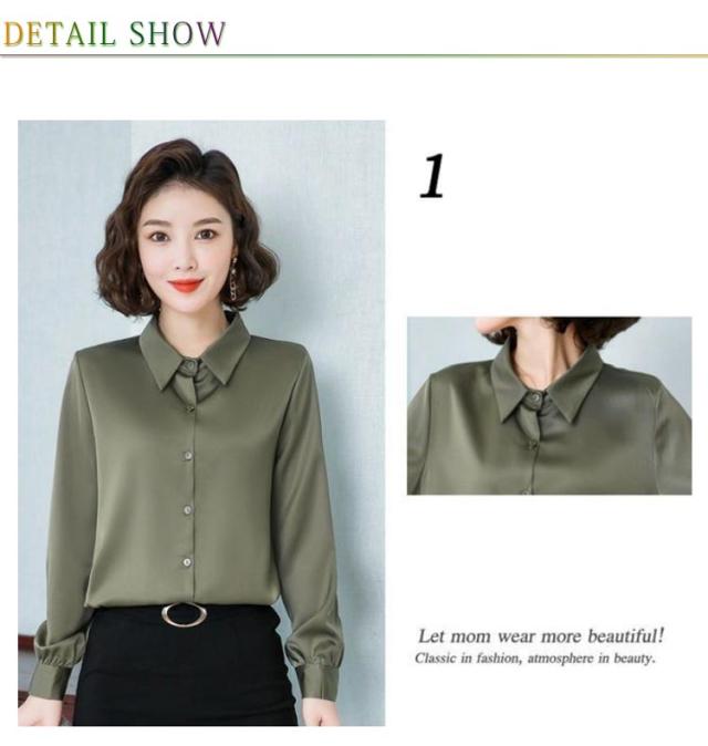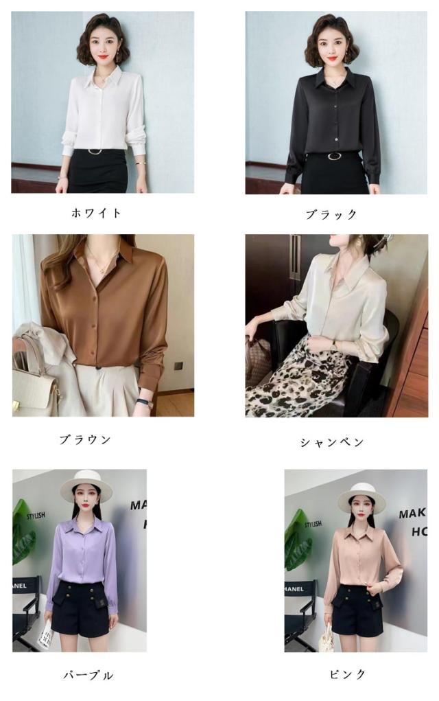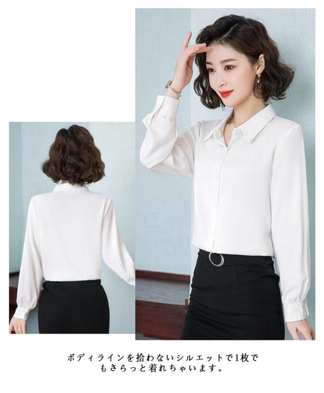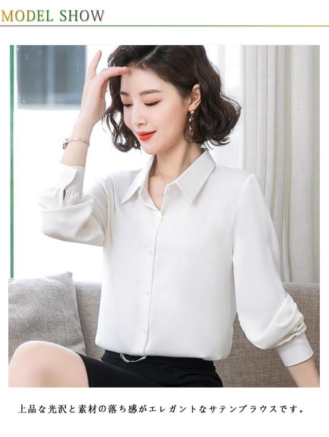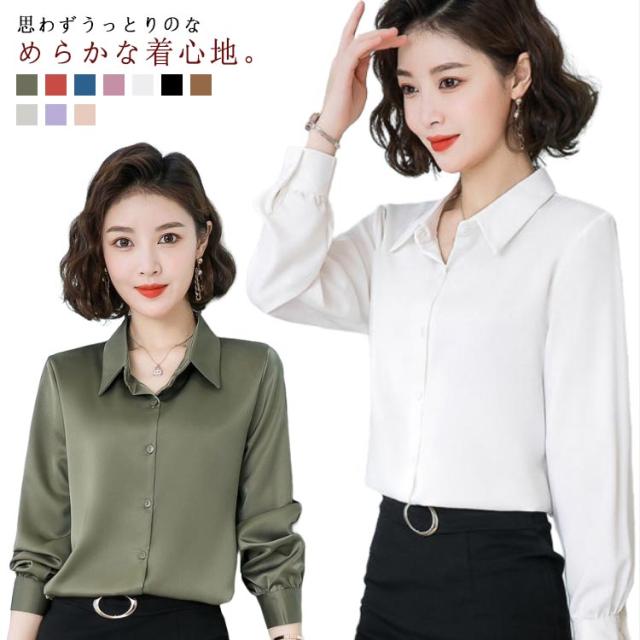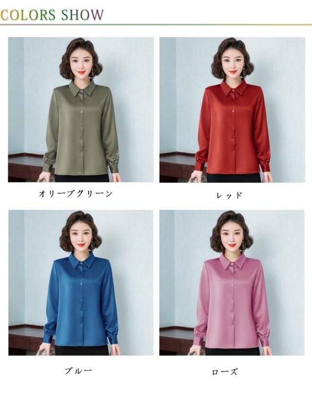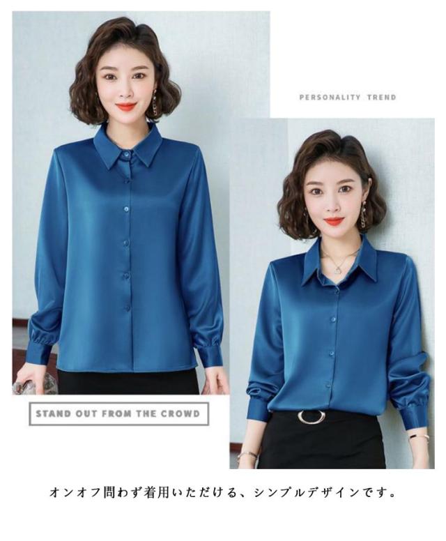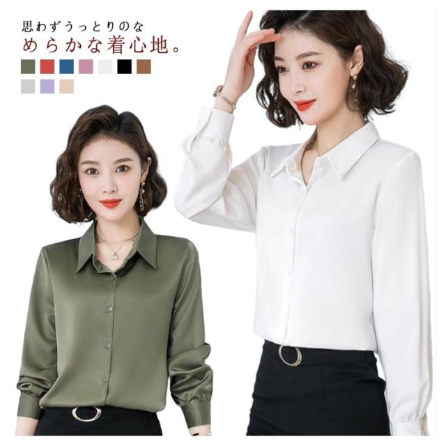 レディース 光沢 前開き 事務服 フォマール 通勤 サテンシャツ 長袖 シャツ サテン 通勤 面接 オフィス 長袖 ビジネス 春 光沢 ブラウス トップス 秋 OL 着痩せ ゆったり 大きいサイズ