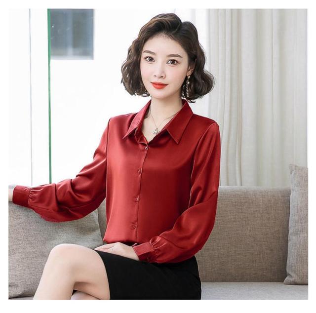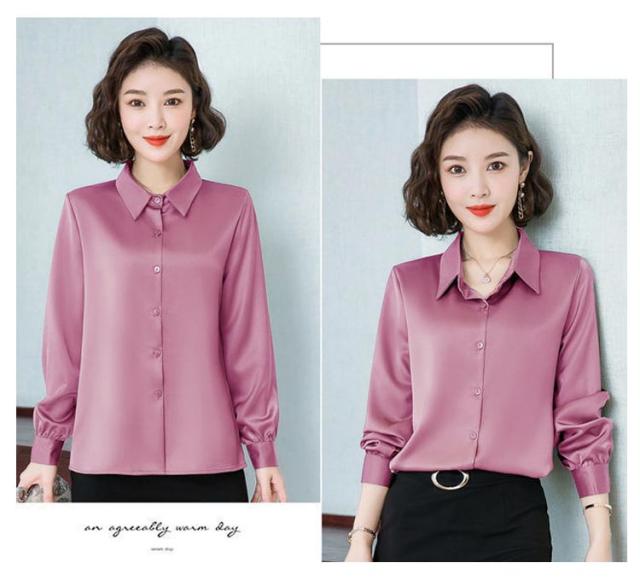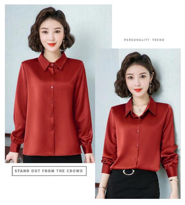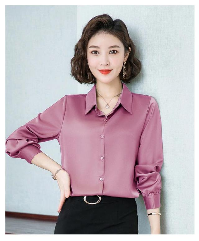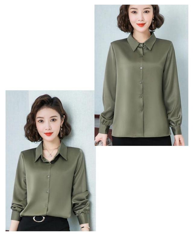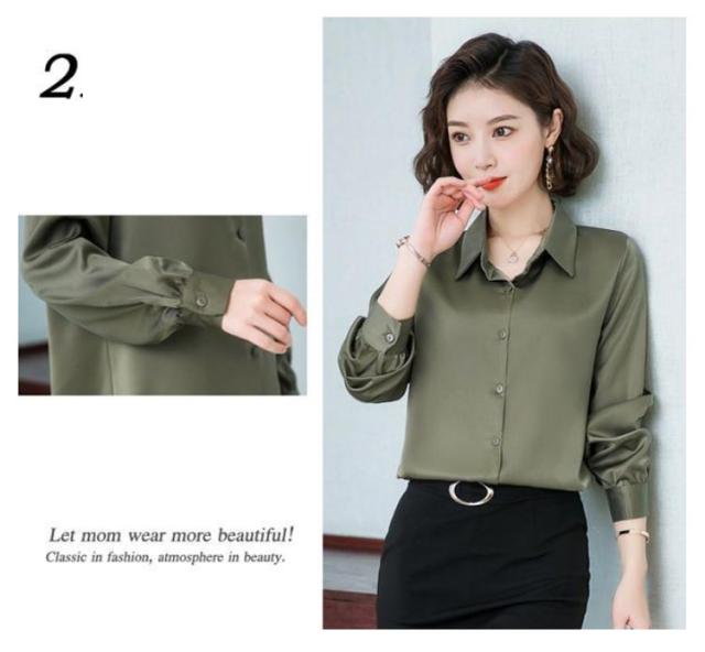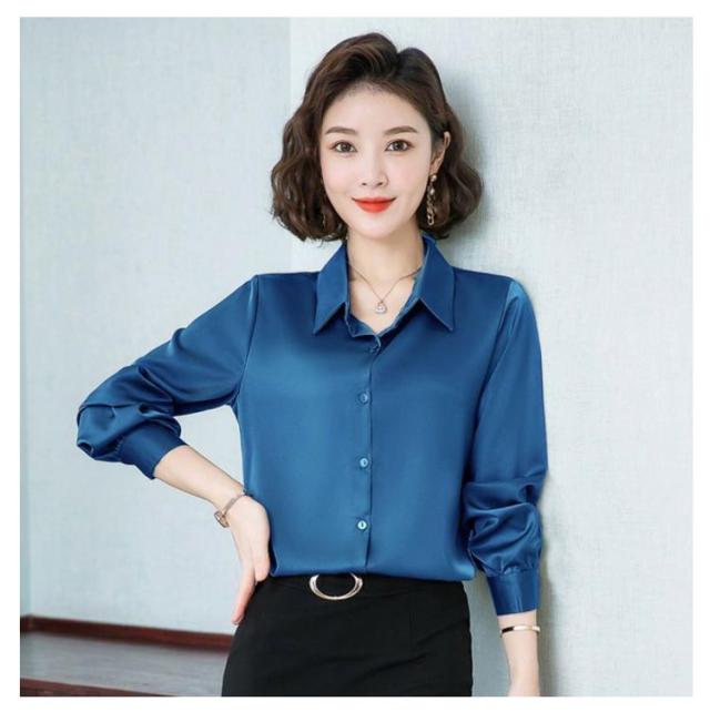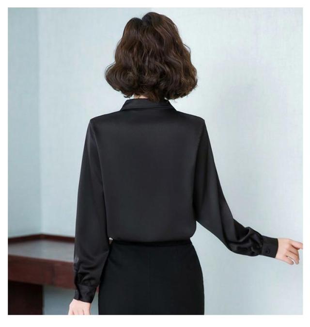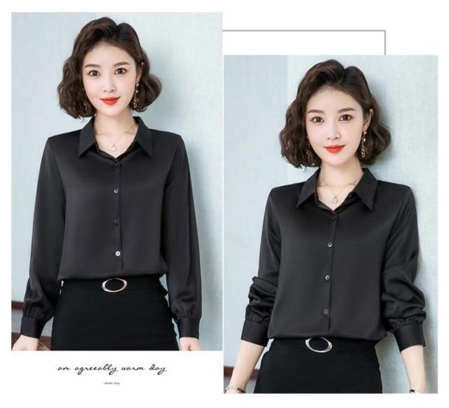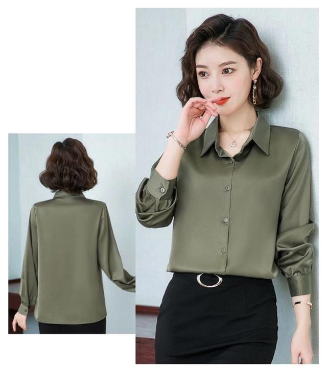 レディース 光沢 前開き 事務服 フォマール 通勤 サテンシャツ 長袖 シャツ サテン 通勤 面接 オフィス 長袖 ビジネス 春 光沢 ブラウス トップス 秋 OL 着痩せ ゆったり 大きいサイズ