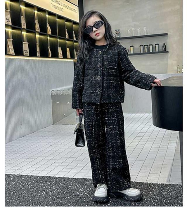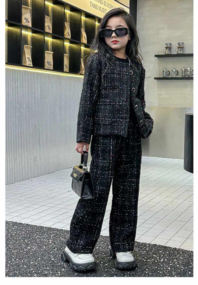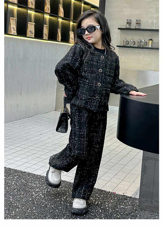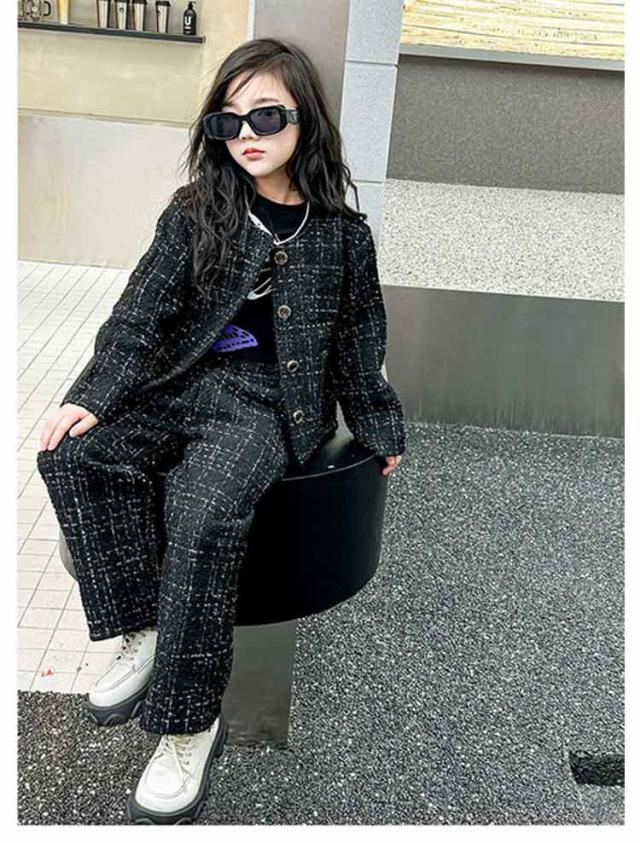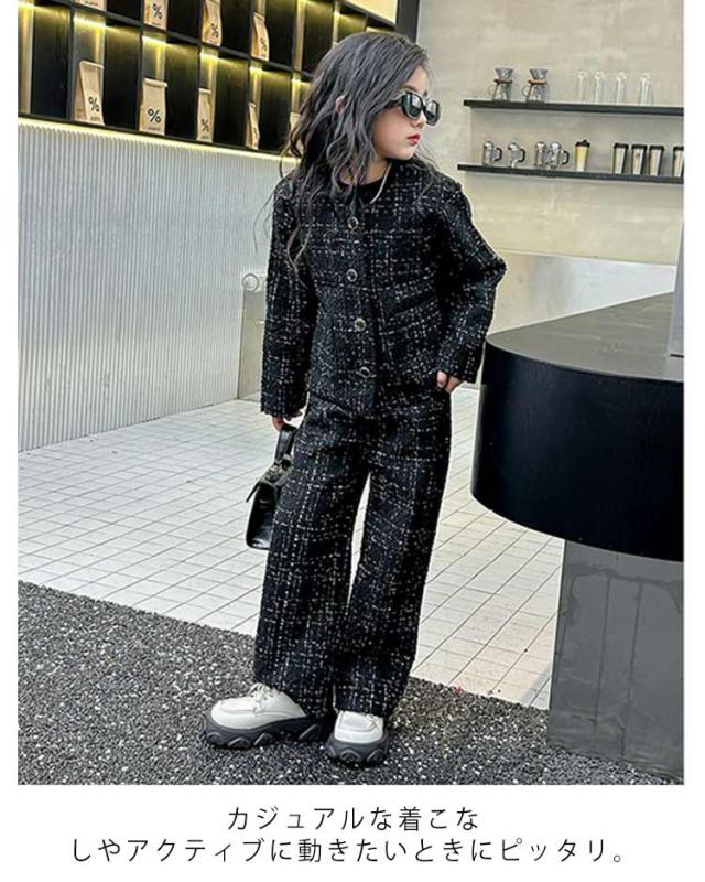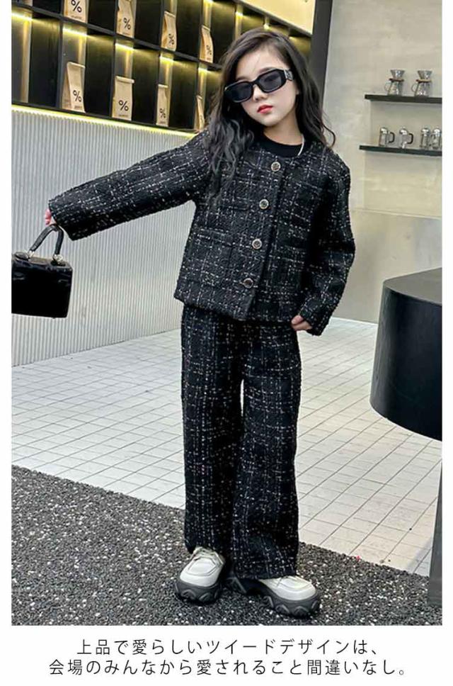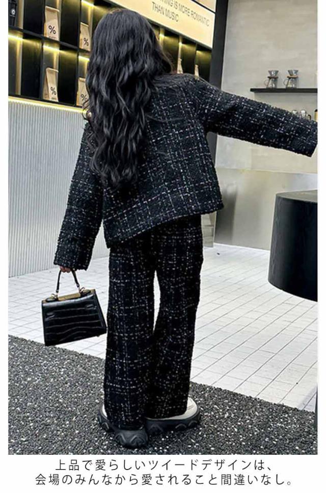 キッズ 入学式 パンツスーツ 発表会 女の子 卒業式 セットアップ ツイード柄ワイドパンツスーツ スーツ トップス 女の子 春 卒服 スーツ 韓国 パンツ 秋 2点セット 子供服 パンツスーツ フォーマルスーツ 大人っぽい 120 130 140 150 160