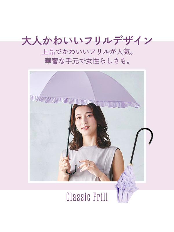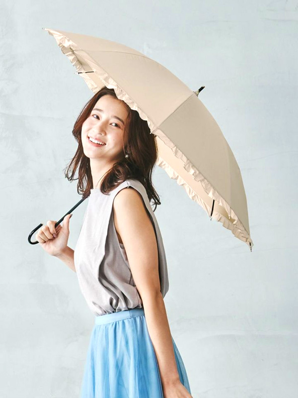 上品なフリルが大人気!完全遮光100%生地を使用したフェミニンな長日傘