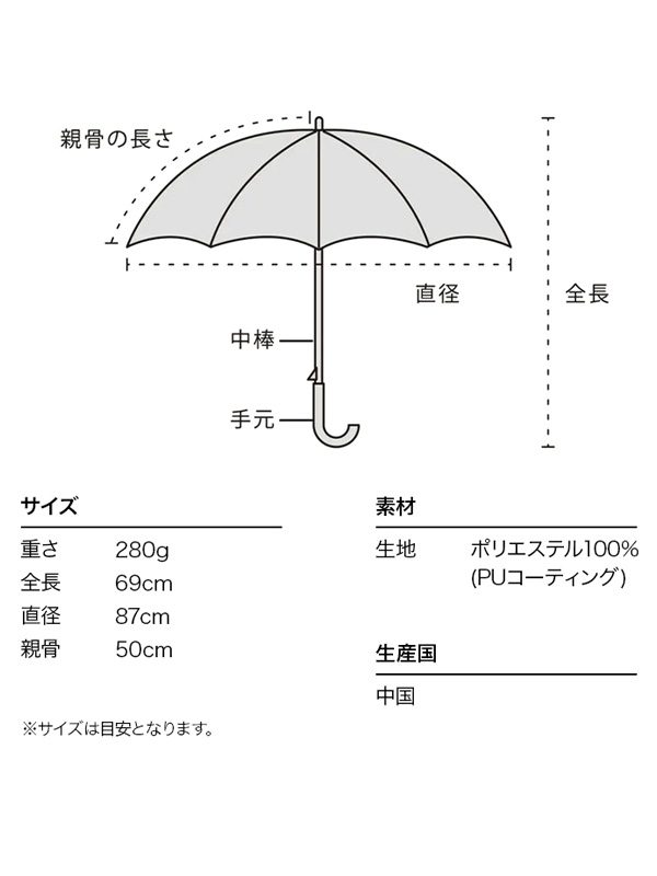サイズ(cm)/全長/直径/親骨/重量(g)
