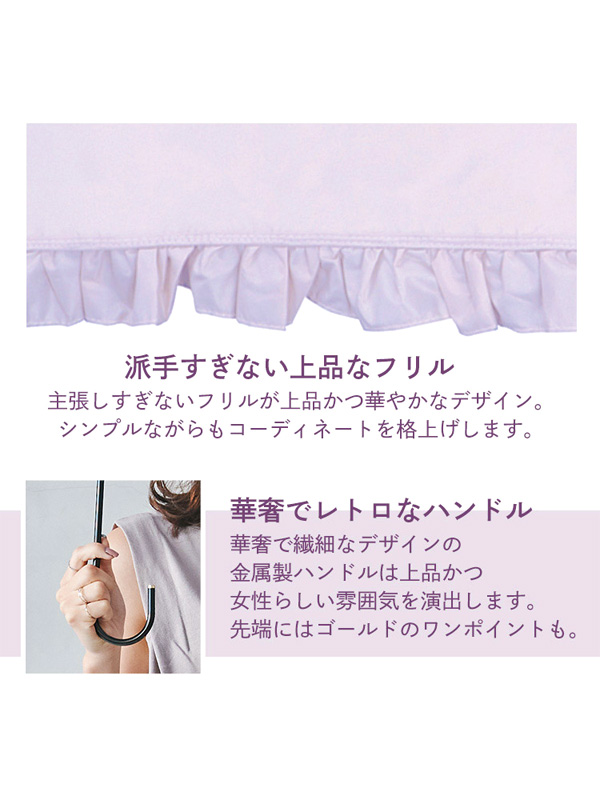 ギャザーを寄せすぎず、上品で可愛いフリルが大人気の長日傘。