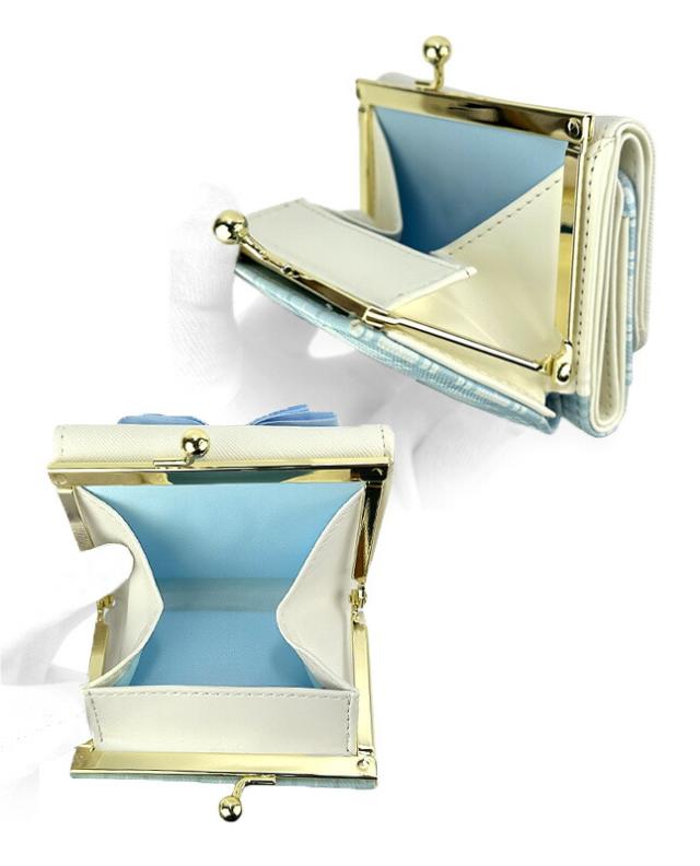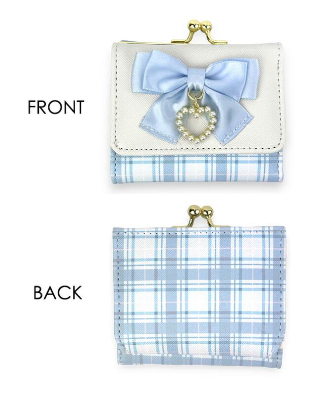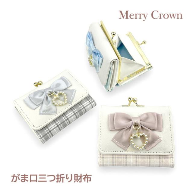 キッズ 財布 女の子 mbr-305 Merry Crown メリークラウン リボンチェックシリーズ ミニ口金財布 ミニ財布 コンパクト財布 三つ折り財布 がま口財布 かわいい ガーリー おしゃれ 女の子 女子 ガールズ 小学生 低学年 高学年 中学生 修学旅行 グレー ベージュ ライトブルー