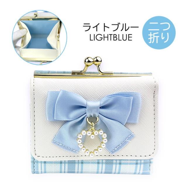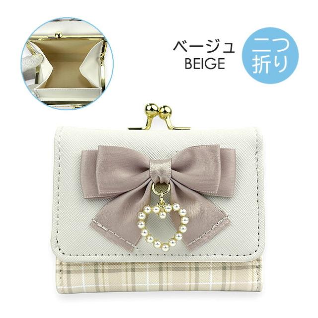 パール調ハート付きのリボン飾りがかわいい三つ折り財布三つ折り財布。