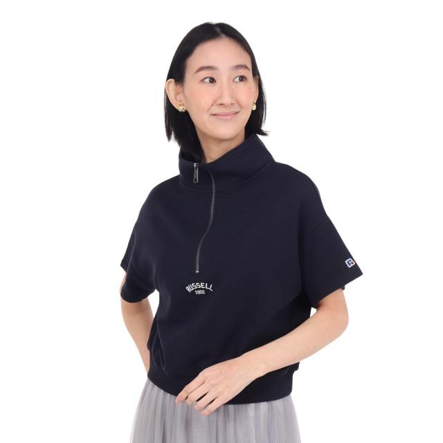 ラッセル(RUSSELL)裏毛ハーフジップ 半袖 スウェットシャツ RBL24S1004 NVY(Lady’s)