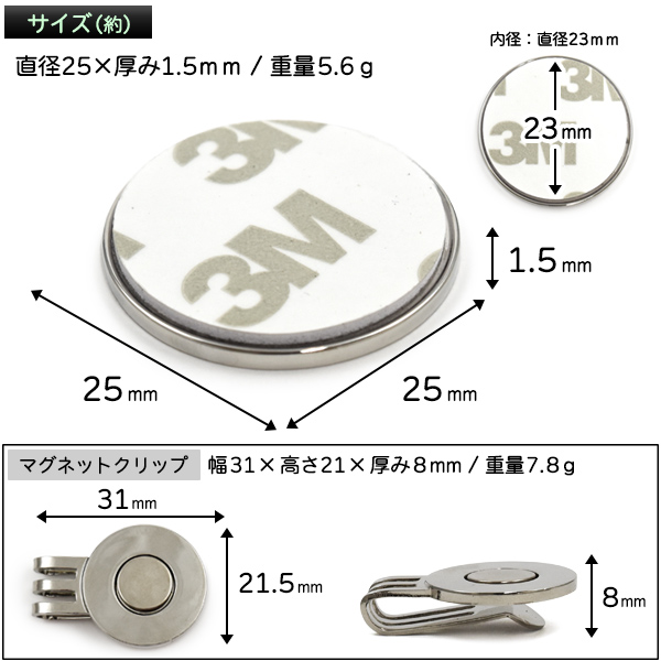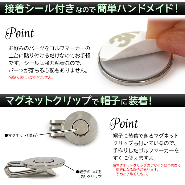 接着シール付きハンドメイド用ゴルフマーカー 25mm マグネットクリップ付き