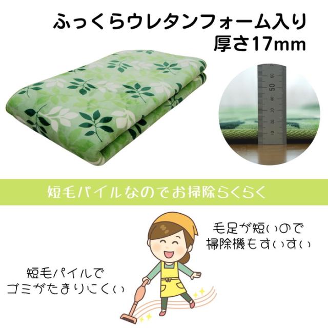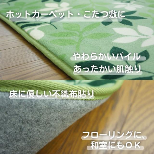 ふっくらボリューム あったかいフランネルラグ「リーフ」グリーン色 4畳用 200x300cm【ホットカーペット・床暖対応】