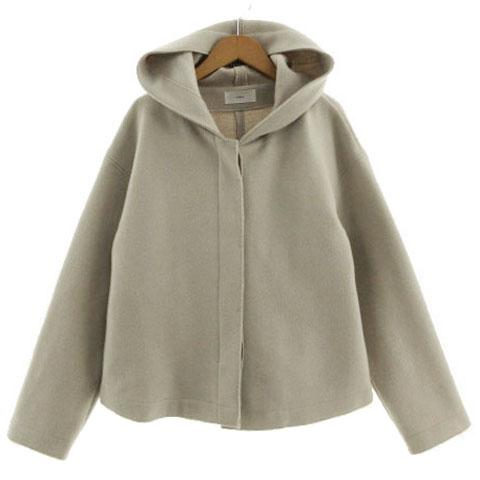 【中古】インデックス INDEX カットメルトンフーデッドショートコート C58-99003 起毛 ウール混 グレージュ M