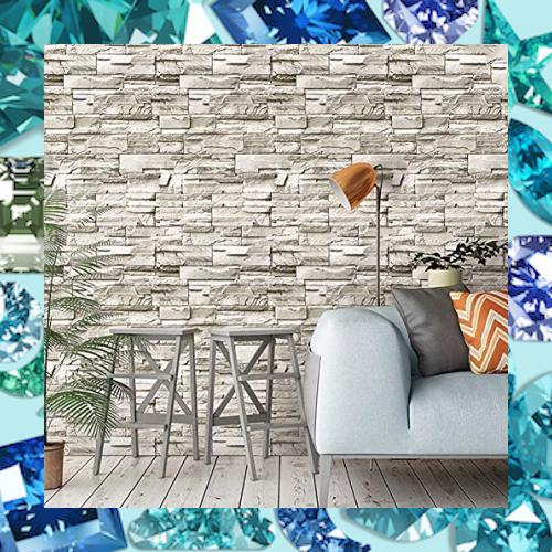 【商品名】壁紙シール ビニール製 色:ブルーグレー 灰青 模様:レンガ石目調; サイズ:幅約60cm×長さ5m 、厚さ約0.1mm、カット目盛付