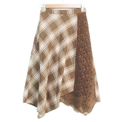 【中古】ウィルセレクション フレアスカート ロング丈 マキシ丈 レース ラメ チェック柄 M 茶 ベージュ レディース