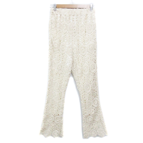 【中古】ヘザー Heather ニットパンツ フレアパンツ イージーパンツ かぎ編み F ライトベージュ /FF20 レディース