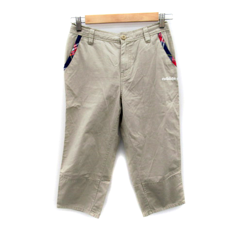 【中古】アディダスネオ adidas neo クロップドパンツ 七分丈 ロゴ刺繍 切替 チェック柄 S ベージュ ■MO レディース