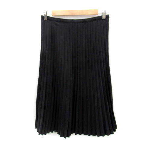 【中古】ニューヨーカー プリーツスカート ミモレ丈 無地 ウール混 大きいサイズ 13 黒 ブラック ■MO レディース