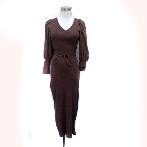 【中古】マーキュリーデュオ ニットワンピース カシュクール 切替 リボンベルト付き F ピンクブラウン レディース