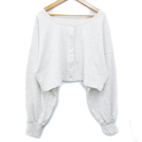 【中古】オリーブデオリーブ カーディガン ショート丈 ラウンドネック F 杢グレー 白 ホワイト /FF12 ■MO レディース