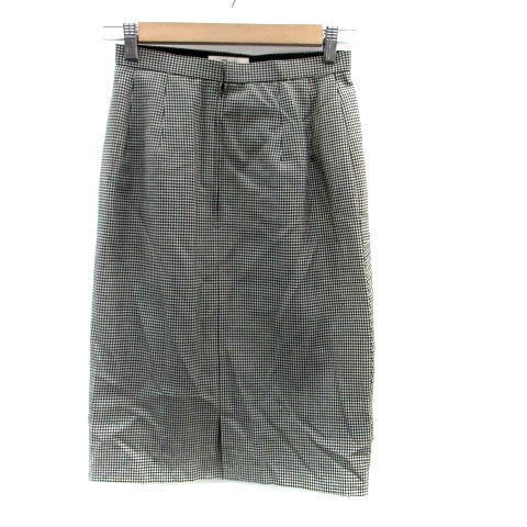 【中古】マダムジョコンダ タイトスカート ミモレ丈 千鳥格子柄 プリーツ ウール 69-96 オフホワイト 黒 レディース