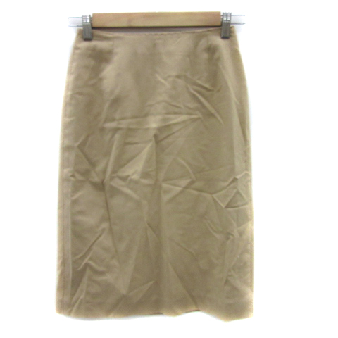 【中古】ハロッズ Harrods タイトスカート ミモレ丈 無地 ウール ベージュ /YS15 レディース