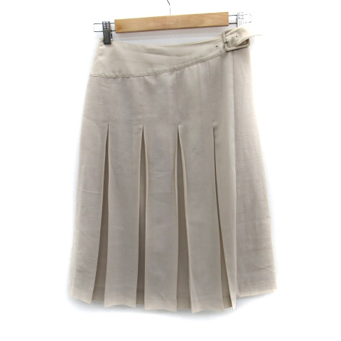 【中古】エル ELLE ラップスカート プリーツスカート ミモレ丈 38 ベージュ /SM18 ■MO レディース